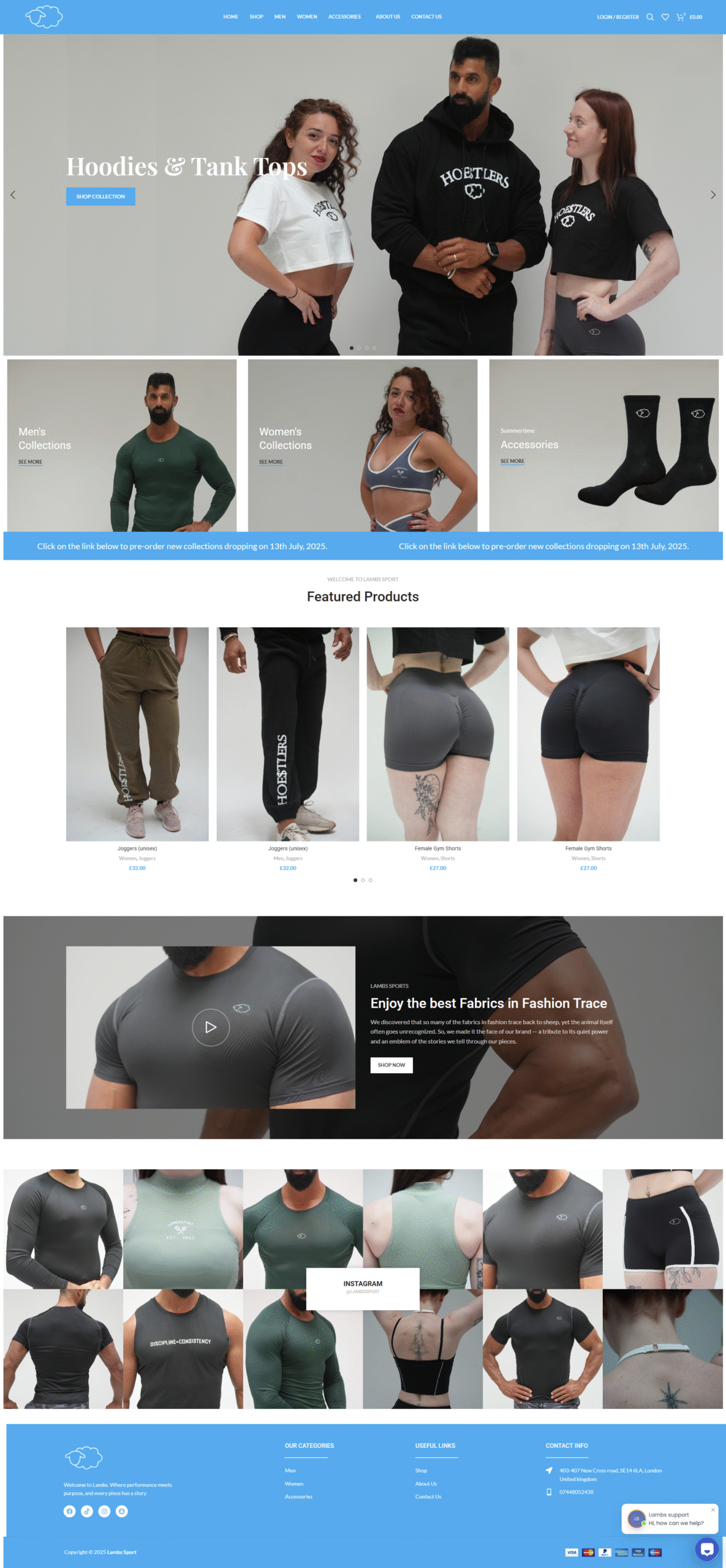 Lambs Sport is a modern ecommerce store offering high-quality sportswear and athletic gear. Built for performance and style, the platform delivers a seamless shopping experience with fast loading, mobile responsiveness, and easy navigation.
